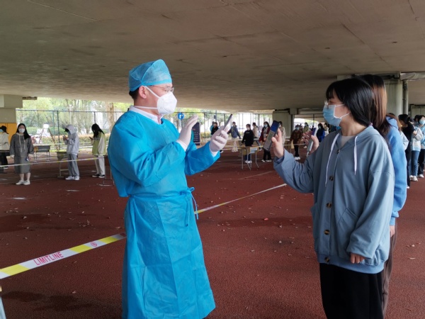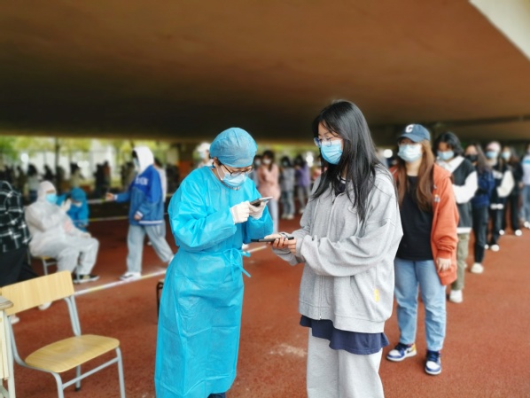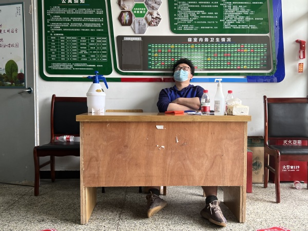 学校遵守防疫要求,对于部分同学进行单独隔离。老师们也化身志愿者,为同学们提供24小时的守候和照顾。