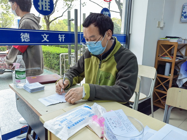 他是老师,也是采集核酸的志愿者,高效率地完成采样工作后,已经疲惫不堪。