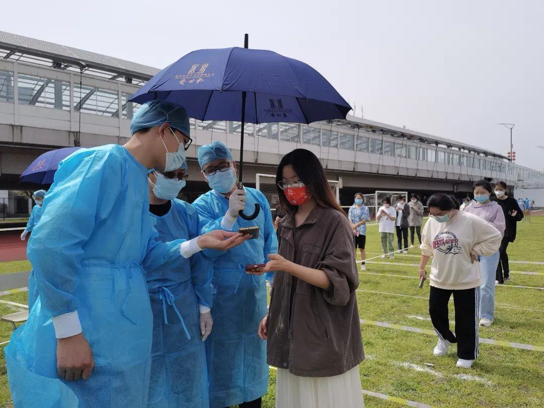 昨天,来自衢州市中医医院的18名医护人员为开元网页版做第二轮全员核酸采样。留校教师纷纷化身志愿者,负责数据录入、秩序维持以及现场管控等工作。