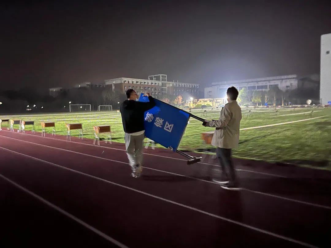 凌晨三点的操场上,工作人员还在布置场地,只等一切准备就绪,静待第一轮全员核酸检测。