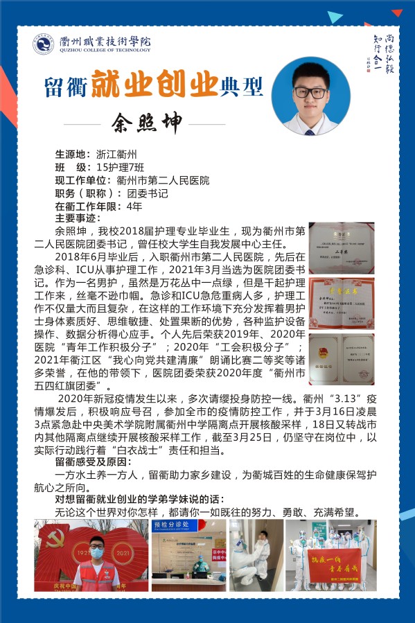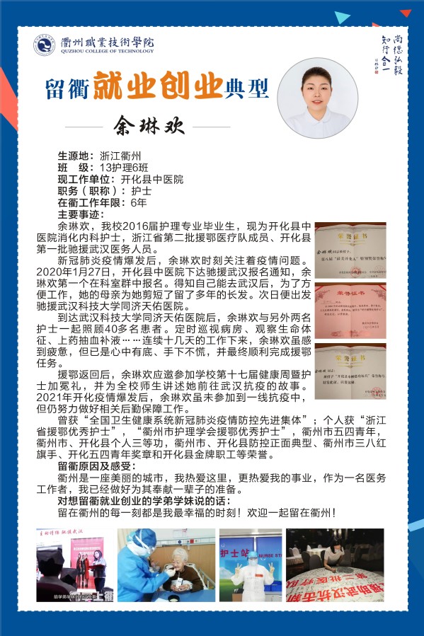 本期,让我们走进医学院优秀校友余琳欢、余照坤的留衢就业创业故事。