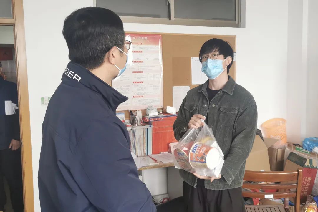 副校长徐浪静为隔离在寝室的同学带来水果、牛奶等。