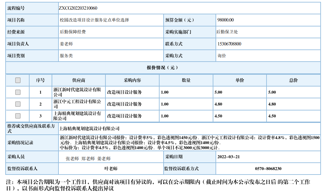 开元网页版校园改造项目设计服务定点单位自行采购信息公示