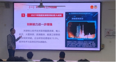 近日,全体校领导和思政理论课教师通过《形势与政策》课,向全校一、二年级学生开展“两会”精神专题宣讲活动,引导学生正确认识我国经济社会发展形势,进一步坚定“四个自信”。