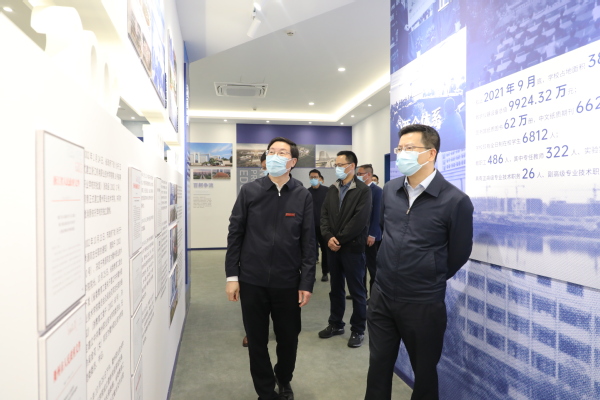 邓崴一行走访了校史馆、乡村振兴社会培训展示厅、工业互联网实训中心、护康养实训中心、8090宣讲团实训中心、数字创意设计实训中心、四省边际产业资料中心、X考证中心。