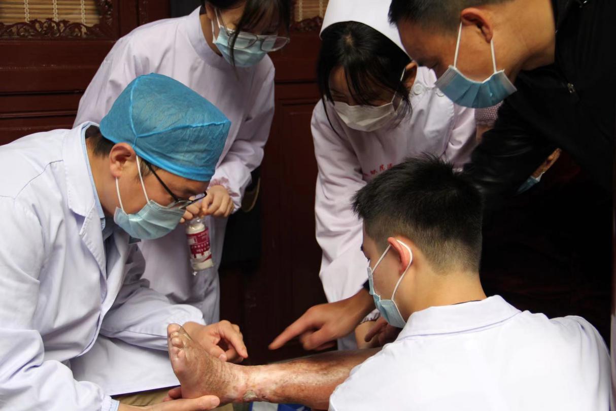 面对深受细菌战荼害的衢州烂脚病老人,医学院依托护理高水平专业群,组建一只以专任教师、学生志愿者为主体的医疗服务队,通过协同各社区为烂脚病老人提供系统、专业的居家诊疗服务,逐步构建起以柯城、衢江为中心,辐射常山、龙游、江山、开化的“烂脚病老人”医疗照护志愿服务体系。主动集结,不避山路崎岖,奔走大山、乡村,用所学技能和大义担当,接力为饱受侵华日军细菌战遗害的“烂脚病”老人们做“修脚工”,用实际行动抚慰民族伤痛,同时挖掘、保存细菌战史实。