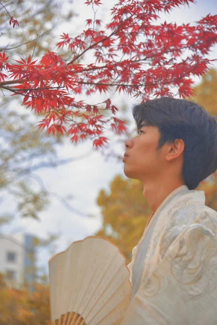 舞龙队的另一成员徐建忠热爱中国传统文化,他喜欢用汉服展现自我,用舞龙演绎传统文化。他平日里和周围的同学没有什么两样,一身工装或运动服,忙碌穿梭于寝室、教室和实训室三点一线。但到周末,他就会换上全套的汉服穿搭,和汉服社的三五好友,带着全套拍摄装备,从田径场到水亭门,从大草原到体育中心,享受着这种沉浸式的文化体验。