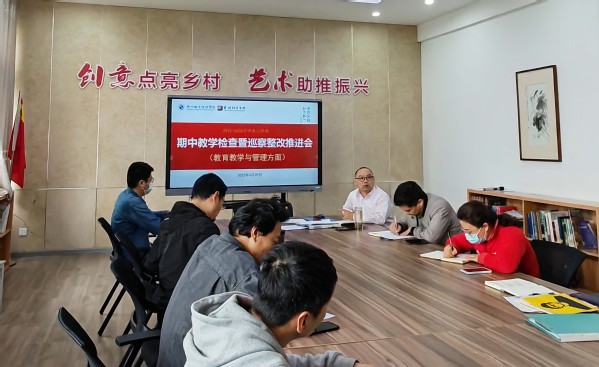 4月29日,艺术设计学院在艺术楼三楼教室发展中心召开“期中教学检查暨巡察整改推进会”。艺术设计学院院长叶云龙、书记戚景云,全体教师参加了会议。会议由副院长许金友主持.