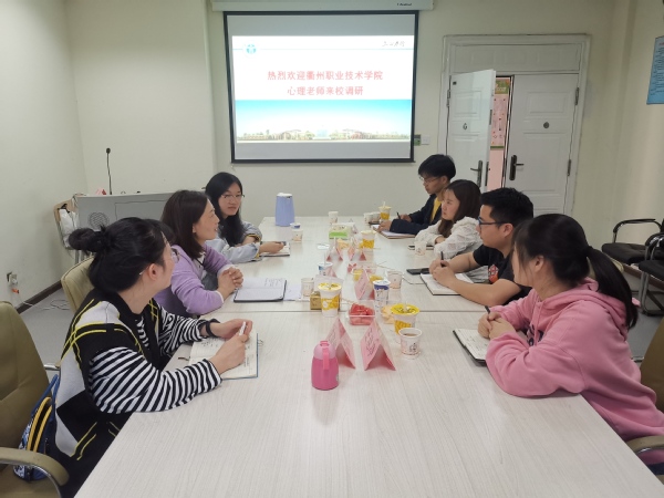 交流会上,刘主任首先介绍了衢州学院心理中心的建设与工作开展情况,对衢州学院心理健康教育工作体系建设、队伍发展、教育教学、心理咨询服务等相关情况进行了分享。之后双方就心理咨询与危机干预、专兼职心理咨询师队伍建设和培训、心理健康教育课程、心理健康教育活动开展、心理健康工作品牌创建等共同关心的问题展开深入交流和探讨。