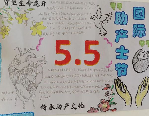 为庆祝助产士节的到来,同学们用画笔在纸上描绘出她们理想的助产士形象。手抄报向我们展现的不仅是他们对助产专业的认识和憧憬,更是他们对这个专业的热爱和坚持。