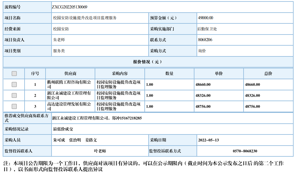 开元网页版校园安防设施提升改造项目监理服务自行采购信息公示