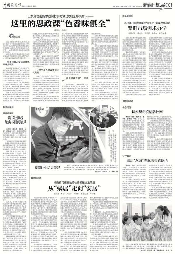 《中国教育报》2022年5月30日 报道 记者 蒋亦丰 通讯员 孔庆红 欧阳洪萍