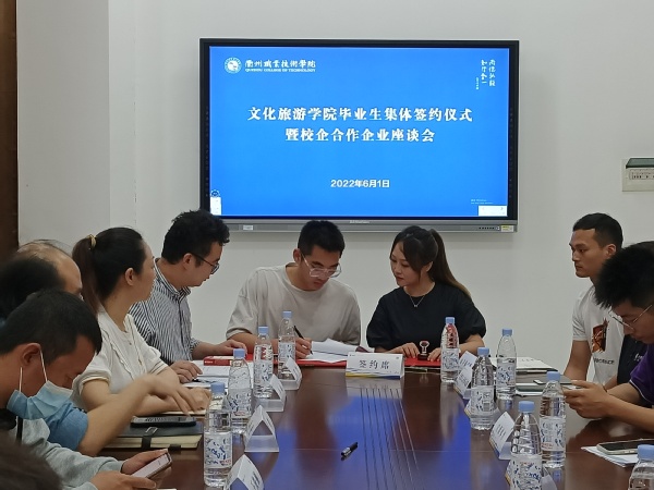 文化旅游学院积极响应省教育厅“关于推进2022届毕业生就业创业工作视频会”精神,努力提升就业工作服务效率,做好毕业生和企业之间的桥梁作用,为学生就业做好服务,在本次活动中我院14位同学同5家企业现场签订劳动合同。