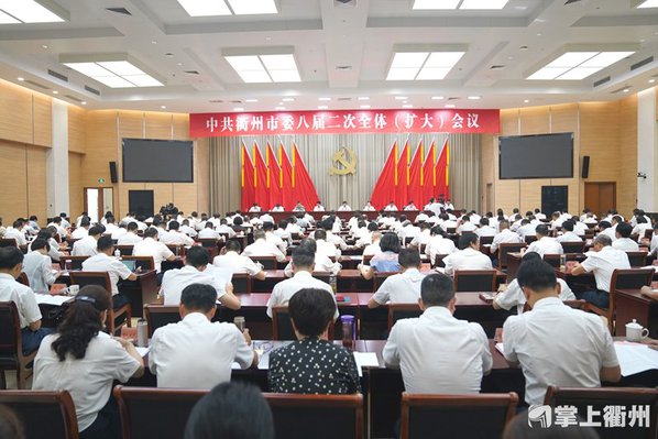 2022年7月20日上午9时,中共衢州市第八届委员会第二次全体(扩大)会议召开。市委书记高屹代表市委常委会,作关于市委常委会工作的报告和关于学习贯彻省第十五次党代会精神的报告。