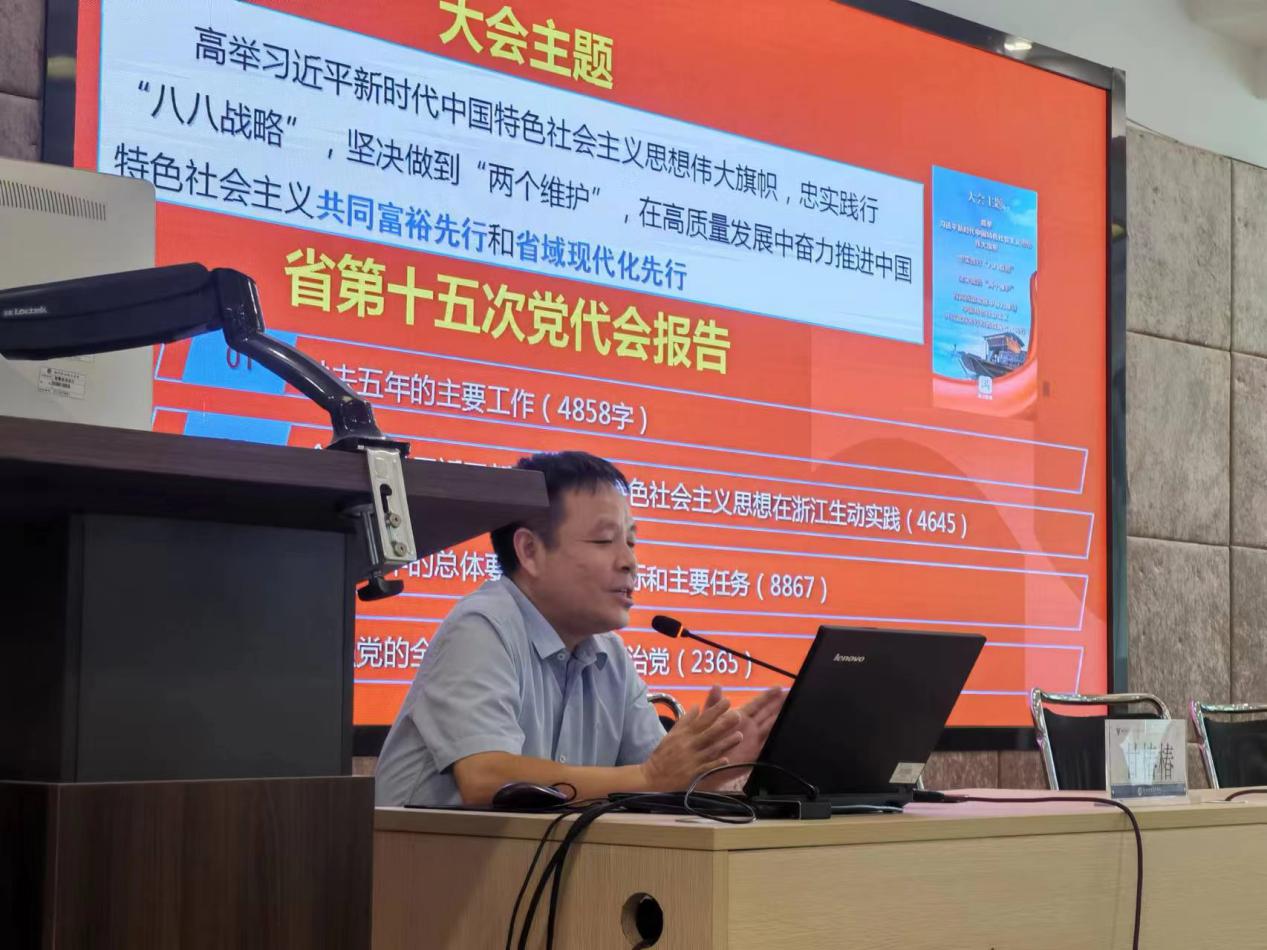 余文富围绕“认真学习省第十五次党代会精神”、“医学院的党建思路”和“深入开展六治六提作风建设”三个主体与大家开展交流,会议还传达了学校暑期中层以上干部暑期读书班的会议精神。