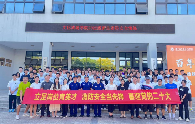 为提高师生消防安全防范意识,掌握消防安全知识,进一步提高消防安全应急能力,9月6日下午,文化旅游学院与党建联盟共建单位——柯城区消防救援大队共度主题党日,举行消防安全应急演练,为2022届新生开展了一场别开生面的始业教育。
