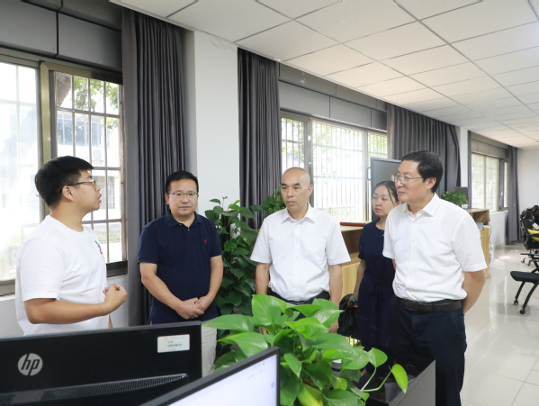 黄孔森一行实地走访了我校乡村振兴社会培训展厅、工业互联网实训中心、医护康养实训中心、四省边际产业资料中心、1+X考证中心,详细了解了我校高水平专业群建设、实训基地建设、服务地方发展等情况。