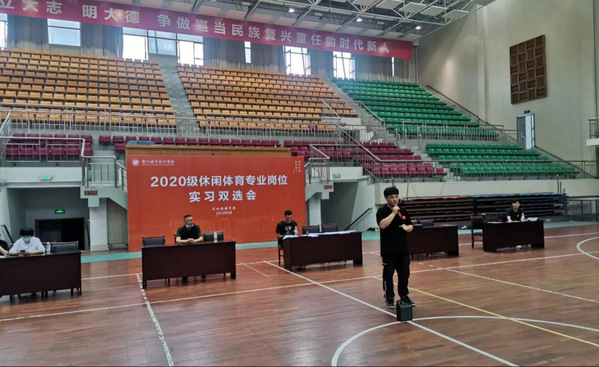 根据教育部等八部门关于印发《职业学校学生实习管理规定》的通知(教职成[2021]4号)的文件精神,为全面落实我校2020级休闲体育专业学生岗位实习(辅助阶段)工作,进一步加强校企合作紧密度,提升产教融合深度,9月13日下午,文化旅游学院举行2020级休闲体育专业岗位实习双选会。