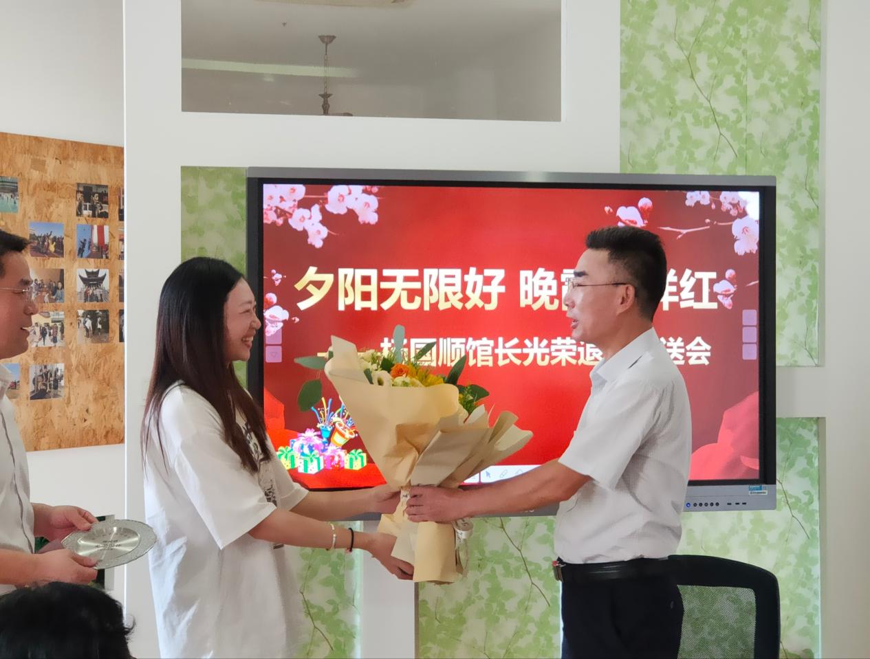 为了落实学校党委、行政激励关怀帮扶政策,根据学校《教职工荣誉退休制度》,9月26日下午,图书馆全体教职工齐聚一堂,为图书馆原馆长杨国顺举行退休欢送会。欢送会由图书馆(档案馆)馆长夏武祥主持,夏武祥为杨国顺颁发了光荣的退休证,还送上了由学校人事处、图书馆精心准备的温暖退休礼物,教职工代表送上了美丽芬芳的鲜花。