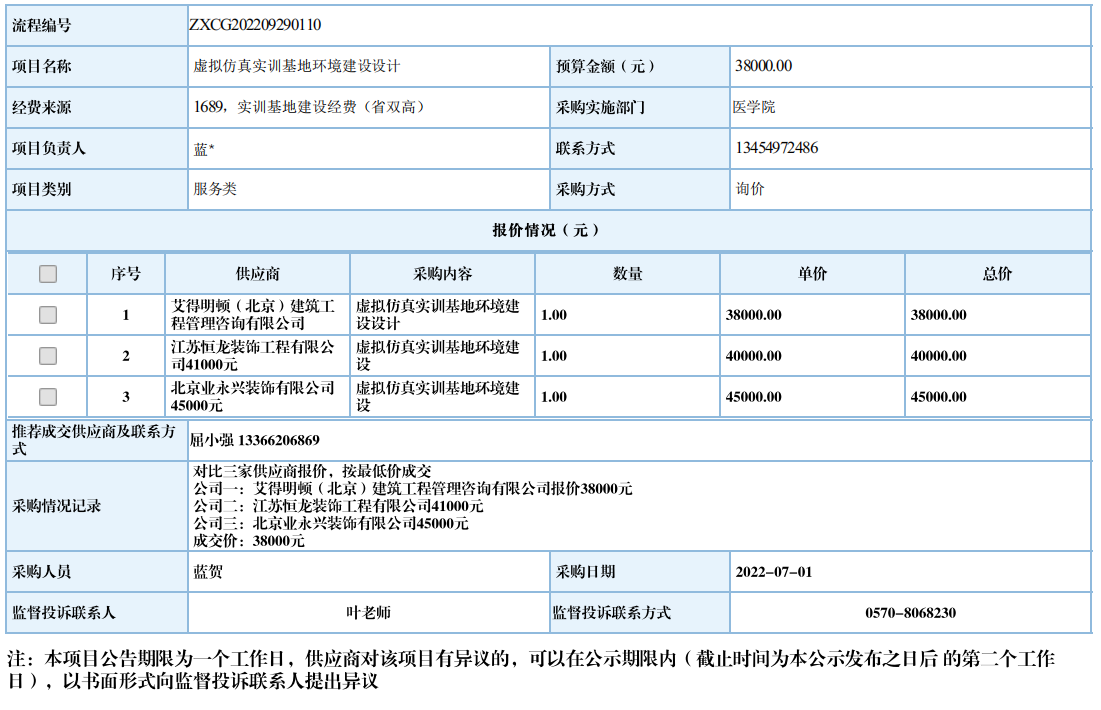 开元网页版虚拟仿真实训基地环境建设设计自行采购信息公示