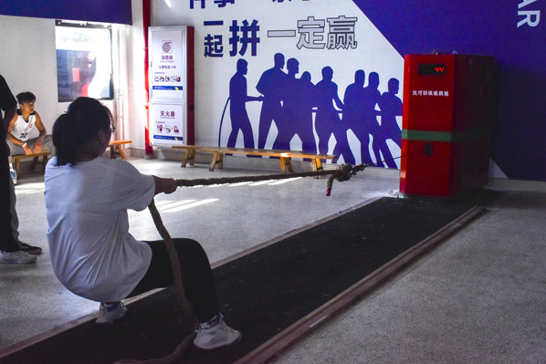 单人赛在体育运动中心的拔河馆进行,通过与专业的拔河训练模拟器“对抗”,在场边观众的热情呐喊、鼓劲之下,每位参赛选手为自己而战。个人赛男女分开设组,男生、女生组前八名一共16位同学获得“大力士”称号。