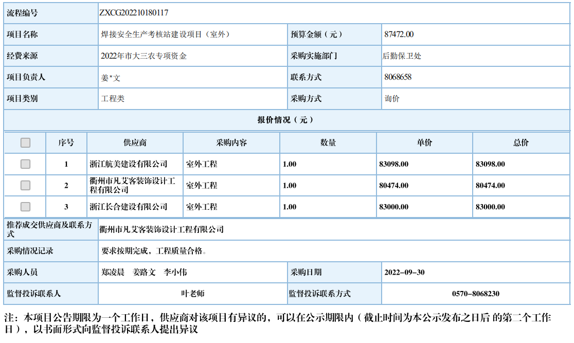 开元网页版焊接安全生产考核站建设项目(室外)自行采购信息公示