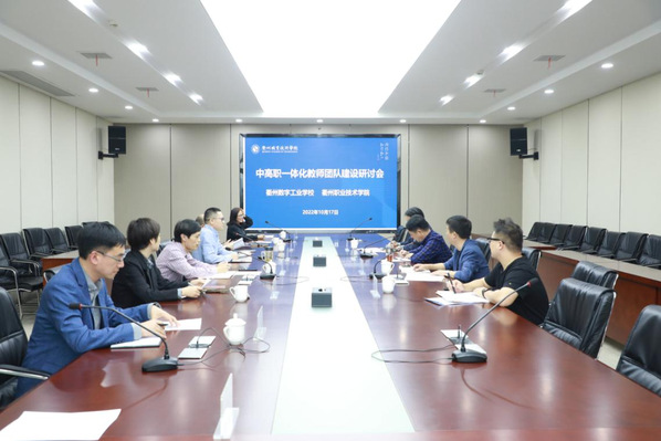 10月17日,衢职院—衢州数字工业学校中高职一体化教师团队建设研讨会在我校举行。双方在第一次研讨的基础上,对团队建设方案进行审议和修改。衢州数字工业学校书记季志辉,校长毛永涛,副校长胡汉,我校党委委员、副校长姚水洪出席。