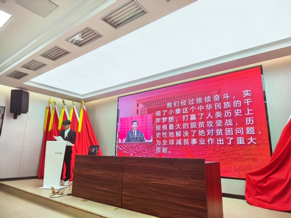 湖州职业技术学院“吾爱 吾信”新时代文明实践大学生宣讲团宣讲员金宇航以《砥砺奋进迎共富 不负韶华谱史诗》为题,讲述了在中国共产党的坚强领导下,中华民族创造了打赢脱贫攻坚战、全面建成小康社会的伟大奇迹,以及“燃灯”校长张桂梅用爱与坚守书写脱贫攻坚靓丽篇章、扶贫书记黄文秀带着梦想和担当扎进广西百坭村的脱贫攻坚第一线的感人事迹。