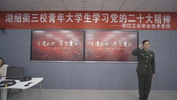 浙江工业职业技术学院“浙工院青年说”青春宣讲团宣讲员沈艺以《使命镌刻忠诚,青春书写华章》为题,讲述了中国共产党成立以来几代人投身军营保家卫国、全心全意为人民服务的荣耀故事,同时结合自己军旅生涯的所见所闻、所思所悟,展现了军人本色和浓厚的家国情怀。