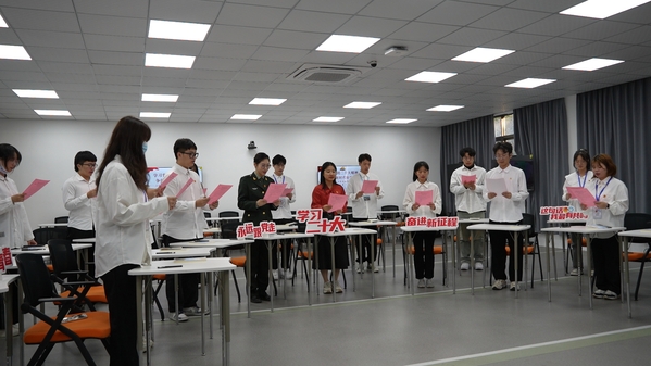 “青年强,则国家强。当代中国青年生逢其时,施展才干的舞台无比广阔,实现梦想的前景无比光明……广大青年要坚定不移听党话、跟党走,怀抱梦想又脚踏实地,敢想敢为又善作善成,立志做有理想、敢担当、能吃苦、肯奋斗的新时代好青年……”党的二十大报告提出了对青年大学生的谆谆嘱托和殷殷期望,三校200余名青年大学生集体齐声诵读,现场学子热血沸腾,铿锵有力的声音彰显着自己的满腔热情。他们表示,要时刻牢记总书记嘱托,让听党话、跟党走的信念成为自觉追求,努力做践行社会主义核心价值观的排头兵,努力让青春在全面建设社会主义现代化国家的火热实践中绽放绚丽之花。
