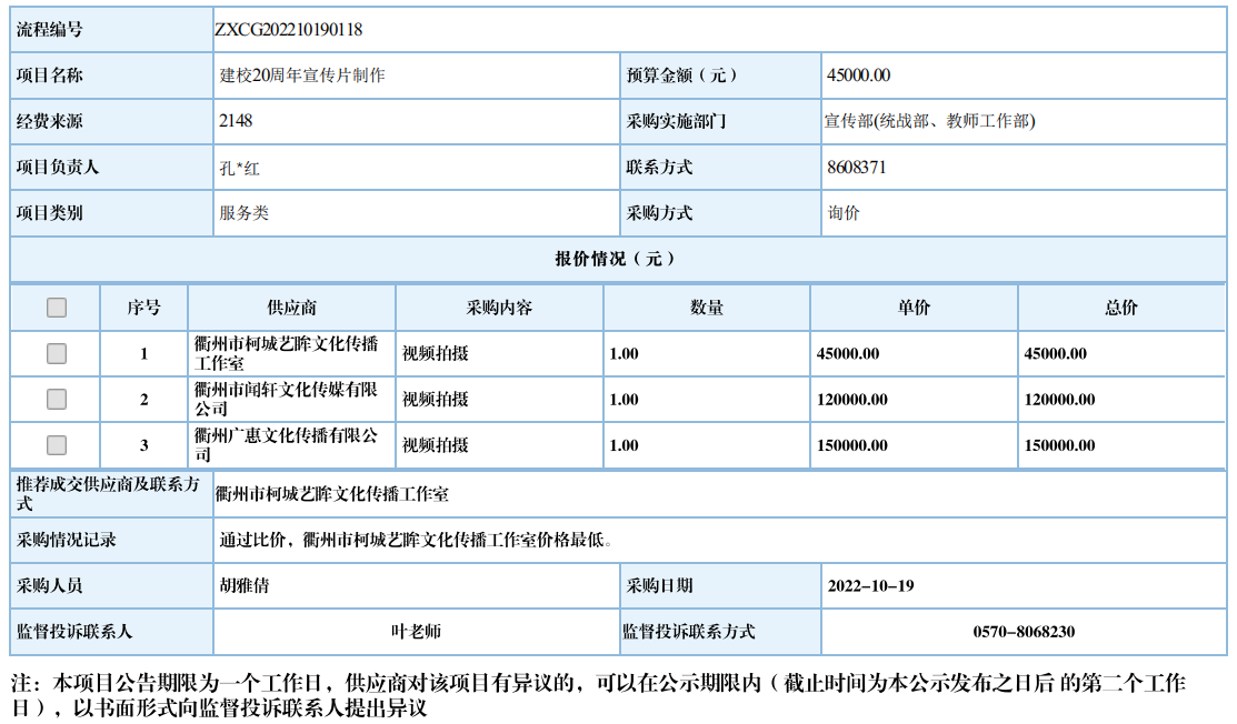 开元网页版习建校20周年宣传片制作自行采购信息公示
