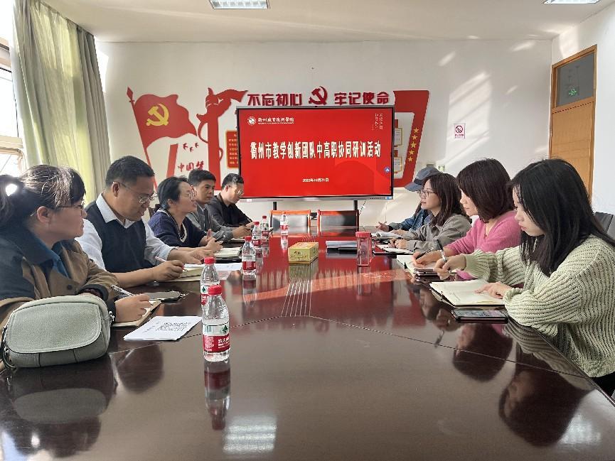 10月21日,我校“专创融合”教学创新团队与衢州中等专业学校“融创”创新创业教育团队开展中高职协同研训活动。衢州中等专业学校副校长蔡文兰、团队负责人陶莉莉和团队主要成员参加了活动。
