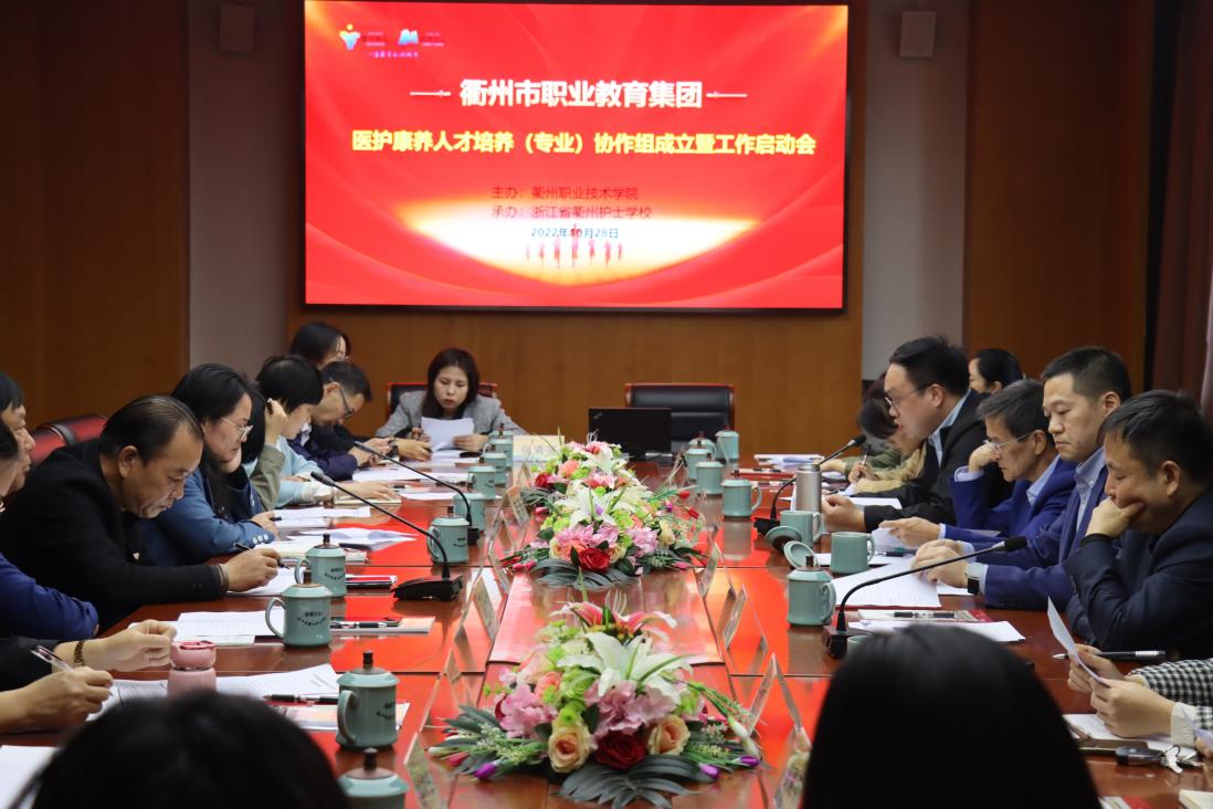 为全面贯彻《衢州市职业教育改革实施方案》精神,合力推进中高职一体化和医护康养专业群“五统筹”改革工作,10月28日下午,在衢州护士学校召开衢州市职业教育集团医护康养人才培养(专业)协作组成立暨工作启动会议。我校党委委员、副校长姚水洪,浙闽赣皖能力重构研究中心主任胡野教授,医学院副院长甘椿椿,教务处综合科科长金鑫君,医学院专业主任,衢州中专、衢州工商学校、衢州护士学校、衢州理工学校、衢州数字工业学校、衢州市赛得前进技工学校等相关负责人和教师代表出席,会议由医学院党总支书记余文富主持。本次会议由开元网页版主办,衢州护士学校承办。