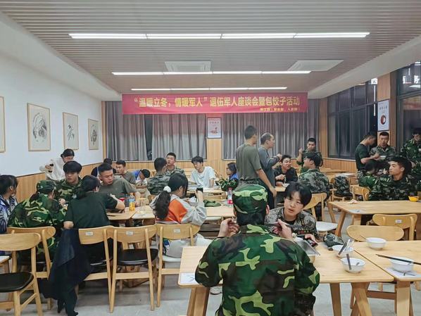 为了传达学校对退伍军人的关爱,提升退伍军人的自豪感、荣誉感、幸福感,培养退伍军人复学后的归属感。11月7日晚,立冬,一天的军训结束,学生处老师们、退伍军人代表们和学生代表们坐在二楼食堂,吃了一顿温暖的立冬饺子。