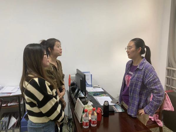 医学院党总支书记余文富及领导班子对徐佳佳、张佳钰本次来访母校表示热烈欢迎。交流会上,周贞询问了她们对母校教学实训、思政教育、实习就业等方面的建议,吴忠勤回忆了选拔护理技能大赛时,她们努力、奋进、拼搏的身影。最后,余文富提出了两个希望,一、希望她们能够在攻读硕士学位期间学有所成、学有所获,二、希望她们有空多回母校看看,母校永远是她们温暖的港湾。交流会现场气氛热烈。