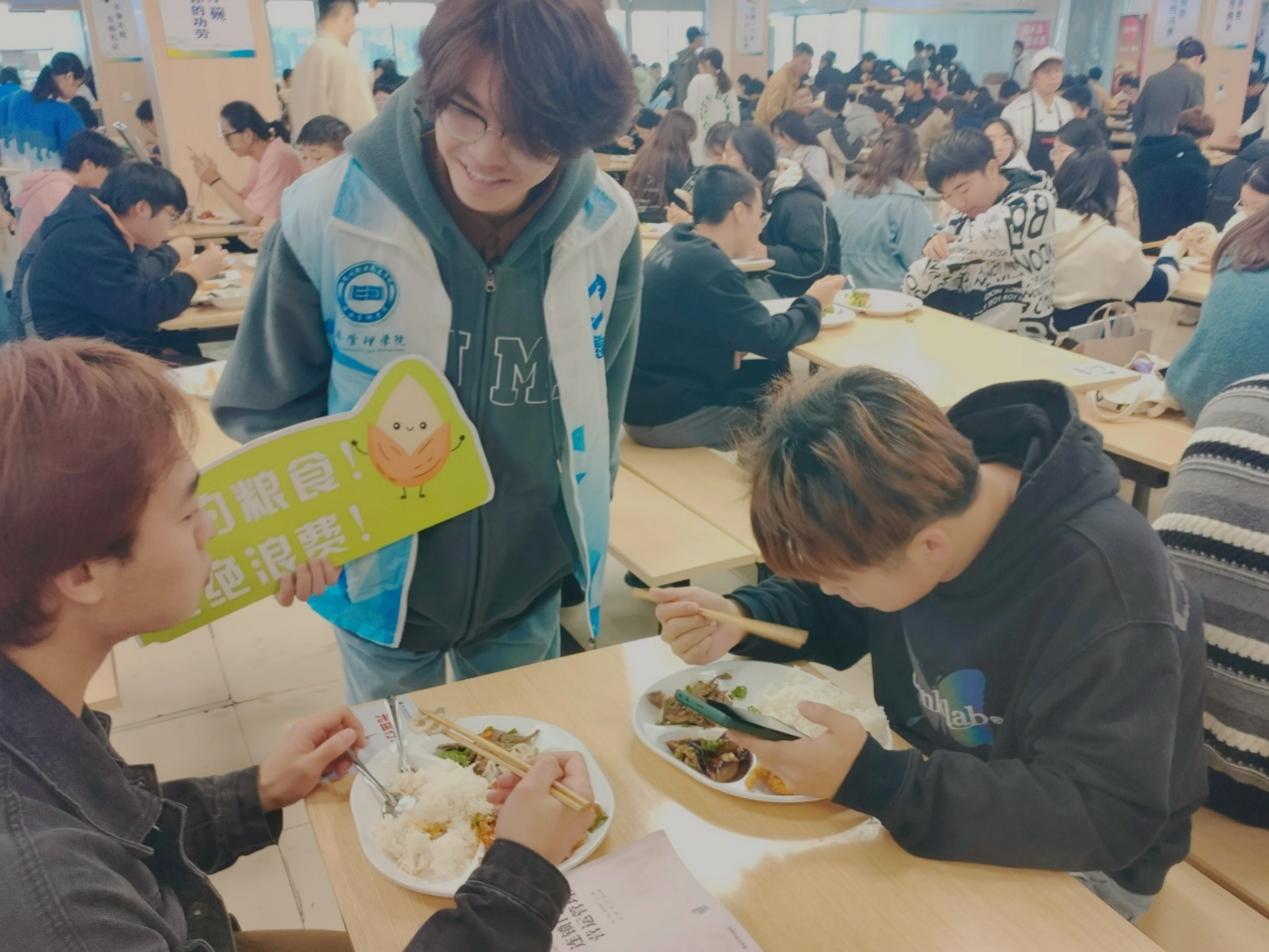 —粥一饭,当思来处不易;半丝半缕,恒念物力维艰。为弘扬中华民族勤俭节约的传统美德,避免舌尖上的浪费,培养广大青年的勤俭节约意识,引导同学们进一步养成珍惜粮食的生活习惯,11月16日中午,经济管理学院联合学校后勤保卫处开展“践行光盘行动,不负美好‘食’光”主题活动,培育崇尚节约的校园文化,倡导健康文明的生活方式和消费理念,让同学们养成良好的就餐习惯,积极参与到“光盘行动”活动中来。