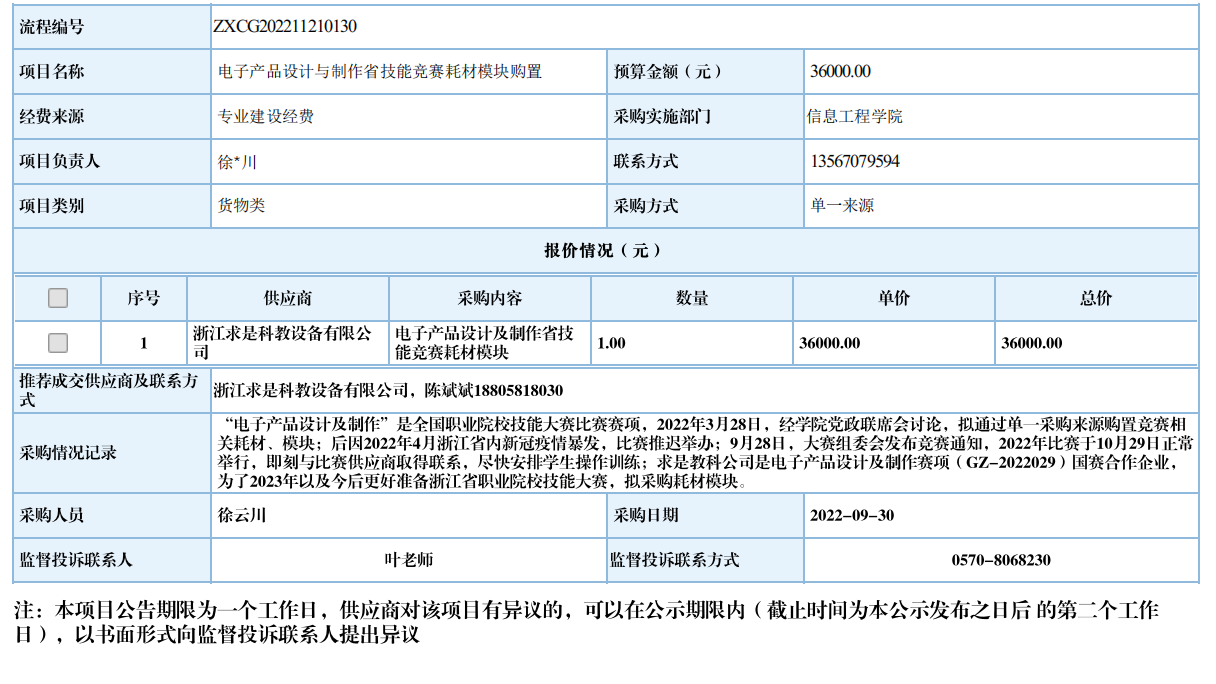 开元网页版电子产品设计与制作省技能竞赛耗材模块购置自行采购信息公示