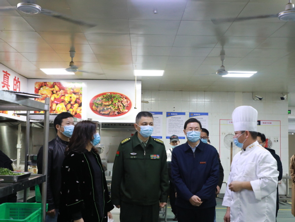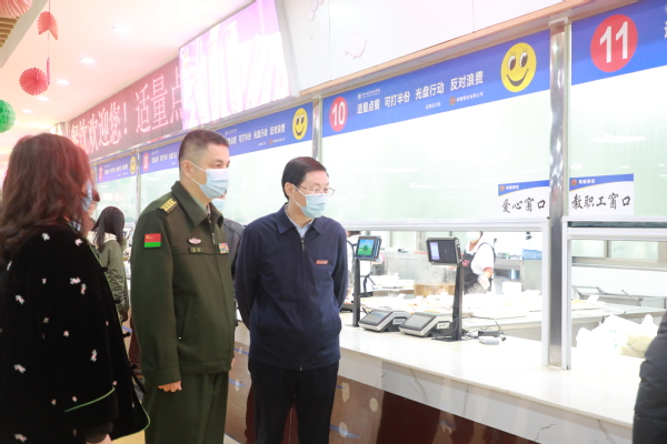 王波对学校食堂食品卫生安全工作的落实给予了充分肯定,同时对进一步做好校园食品安全卫生工作提出指导性建议。他要求,要筑牢“健康网”,做好食堂员工健康监测、核酸检测、环境消杀等工作;要算准“就餐率”,引导学生按照错峰、错时、错位要求就餐,避免聚集;要丰富“餐盘子”,推陈出新,在饭菜品种和口味上下功夫,满足师生多样化需求。
