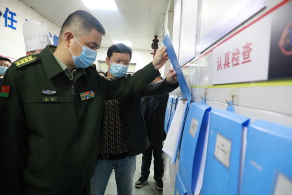王波深入学校一楼食堂就餐和食品加工等场所,走进食堂档口、操作间、仓库、消毒间,实地查看菜品菜色、质量、价格,粮油储备,食品卫生,餐具消毒,食品留样,消防设施及安全,领用登记,刀具存放,厨房台账,各类规章制度等情况,对从业人员健康证持证情况、疫情防控管理情况等进行了重点检查。