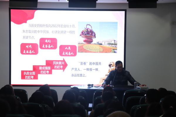 活动中,王刚老师以马克思主义唯物史观导入教学,引出宣讲主题,接着从一段伟大的历史书写、新思想领航新时代、不断实现人民对美好生活的向往、成功推进和拓展中国式现代化、为人类谋进步为世界谋大同、党的自我革命等方面展开党的二十大精神宣讲,让大家深刻感受到了新时代十年中国的非凡成就,形象生动地阐释了新时代十年的伟大变革不是轻轻松松得来的,是在战胜各种风险和挑战甚至是惊涛骇浪中得来的,是全党全国人民团结奋斗、坚决斗争的结果。