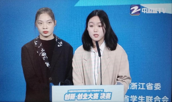 决赛上午进行的创新组比赛共计10组项目,下午的创业组比赛则计15组项目。总决赛以“路演答辩+专家评审”的形式进行,并通过“中国蓝TV”平台进行全程实时直播。路演答辩中,衢职两个项目的提报人思路清晰、条理分明地讲解、展示团队项目情况,现场担任评委的企业负责人为每个项目提供宝贵的意见和建议,弥补大学生创业团队在实践操作中的不足。
