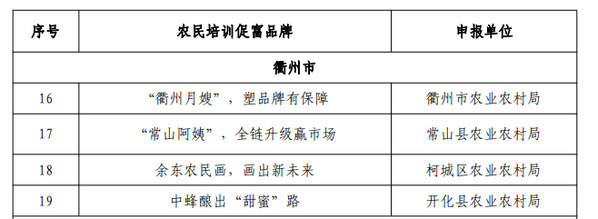 日前,浙江省农业农村厅公布了首批25个省级农民培训促富品牌,学校和教学基地4个项目成功入选,实现以“衢州月嫂”为代表的衢州农民培训品牌卓越升级。