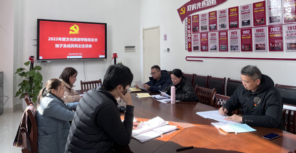 文化旅游学院于2023年2月15日下午召开了2022年度民主生活会。校党委委员、组织部部长周帅同志到会指导,文化旅游学院全体班子成员参加会议,会议由文化旅游学院党总支书记李威主持。