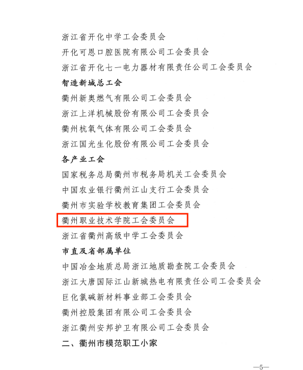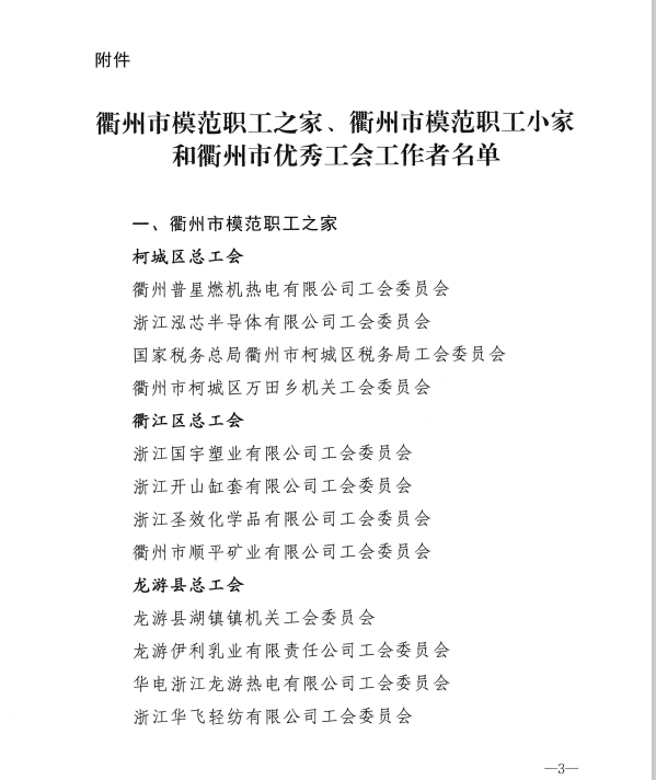 近日,衢州市总工会下发《关于表彰衢州市模范职工之家、衢州市模范职工小家和衢州市优秀工会工作者的决定》(衢总工字〔2022〕43号),开元网页版工会被授予“衢州市模范职工之家”称号。