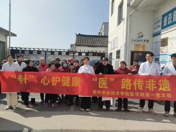 2022年12月份,医学院第一党支部与中共衢江区中医院医共体大洲分院党支部建立党建联盟,党建联盟以传承及发扬国家级非物质文化遗产——“杨继洲针灸”为初心,充分发挥针灸推拿专业优势,为广大居民提供优质便捷的中医诊疗服务,不断提高农民的自我保健意识和健康水平,以促进农村健康全面发展、社会全面进步,助推健康中国战略实施。