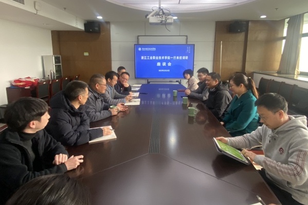 2月20日上午,浙江工业职业技术学院机械工程学院院长杜海清一行来机电工程学院走访交流。校党委委员、宣传部(统战部)部长孔庆孔、机电工程学院院长魏小华、党总支书记朱峻及学院部分专业教师参加座谈。双方就如何备战教师教学能力比赛、学生职业技能竞赛等内容展开深入交流。