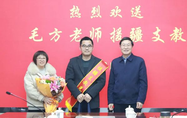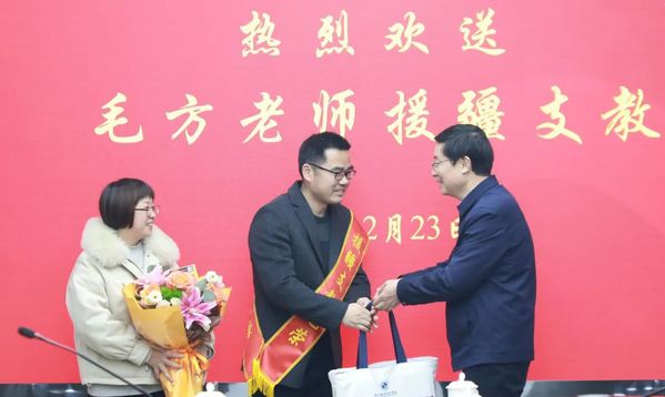 徐须实指出,对口援疆是党中央、国务院为推进新疆跨越式发展和长治久安而采取的战略性重要措施,是促进各民族交往交流交融的重要载体,是彰显社会主义制度优越性的重要实践。徐须实代表校党委向毛方老师积极响应组织号召,志愿到祖国边疆,支援新疆教育事业致以崇高敬意,对毛方老师爱人夏玲妍的大力支持表示衷心感谢!