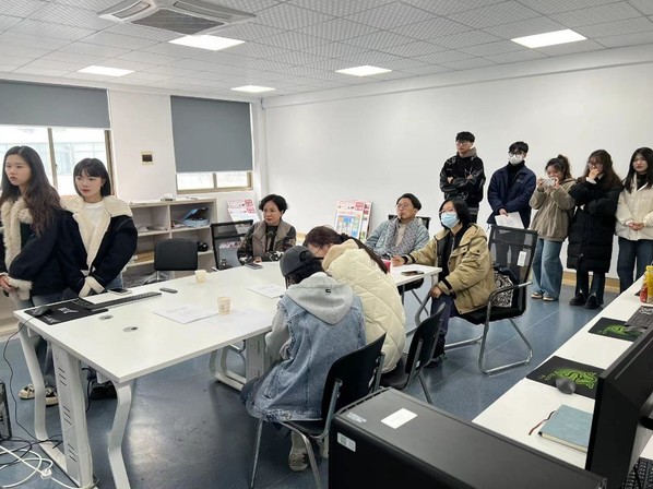 评委组观看数字媒体艺术设计专业学生毕业设计作品展示
