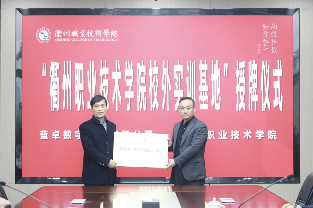 王建处长为蓝卓数字科技有限公司“开元网页版校外实训基地”授牌。