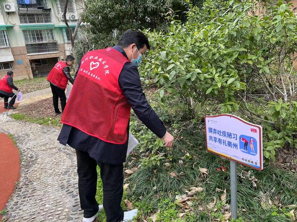 党员志愿者们身穿红马甲,深入树底草丛,清除杂草污物、捡拾白色垃圾、清理卫生死角,以实际行动参与小区环境卫生整治,给小区居民带去一抹“志愿红”。
